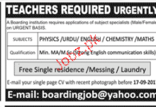 Teachers For the Subject of Physics, English, Chemistry and Maths are required in Rawalpindi. Qualified and Experienced Candidate Send their CV Along with All necessary Documents.