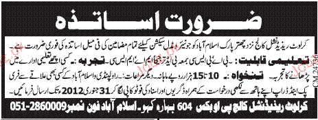 Apply as per details in job advertisement. Login to view further details of how to apply via https://www.jobz.pk online.