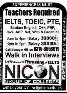 Teachers are required in NICON Group of Colleges in Rawalpindi