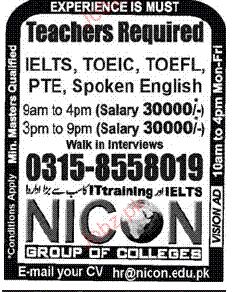 Teachers are required in NICON Group of Colleges in Rawalpindi