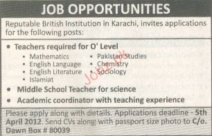 Teachers are required in Karachi