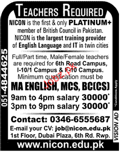 Latest Private Company Teaching Posts Rawalpindi 2025