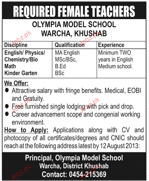 Apply as per details in job advertisement. Login to view further details of how to apply via https://www.jobz.pk online.