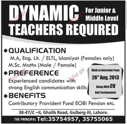 Teachers are required in Lahore