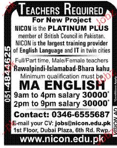 Latest Private Company Teaching Posts Rawalpindi 2025