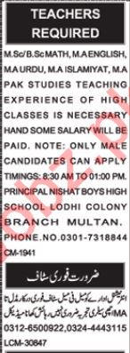 Teachers Jobs 2019 in Multan