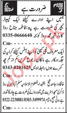 Apply as per details in job advertisement. Login to view further details of how to apply via https://www.jobz.pk online.