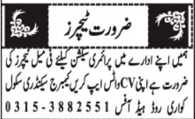 Cambridge Secondary School jobs advertisement dated about 18 February 2025 in daily Jang Newspaper invites application for the vacant post of teacher and female teacher in Kawari Road Quetta, quetta Balochistan Pakistan. Preferred Education is Master and Bachelor etc.