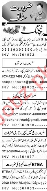 Latest Private School Education Posts Peshawar 2025