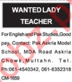 Apply as per details in job advertisement. Login to view further details of how to apply via https://www.jobz.pk online.