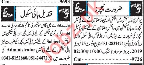Vacancies in Private School Advertisement February 2019
