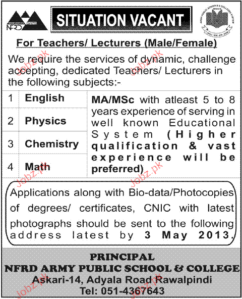 Latest Private Company Teaching Posts Rawalpindi 2025