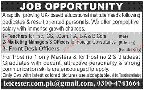 Apply as per details in job advertisement. Login to view further details of how to apply via https://www.jobz.pk online.