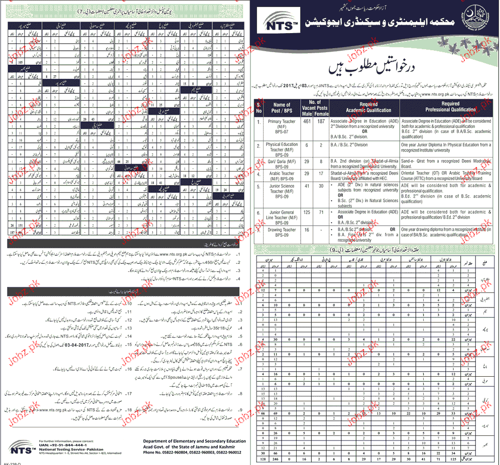 Teachers, PTIs, Qaris And Junior Teachers Job In AJK