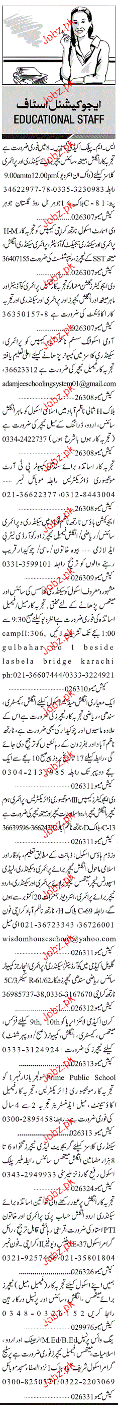 Latest Private Company Teaching Posts Karachi 2025
