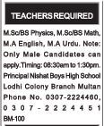 Latest Nishat Boys High School Teaching Posts Multan 2025