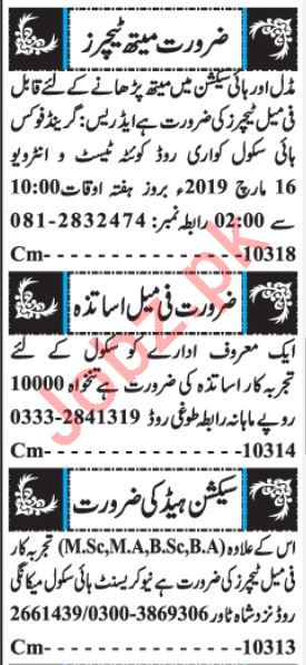 Vacancies in Private School Advertisement March 2019