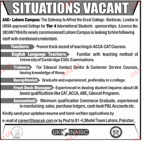 Latest Teaching Posts Lahore 2025