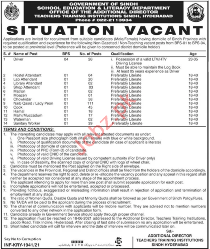 Vacancies in School Education & Literacy Department Advertisement May 2021