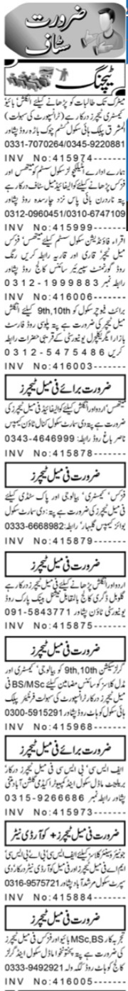 Vacant posts including science teacher, chemistry teacher, teacher, pakistan studies teacher, english teacher, mathematics teacher, qaria, coordinator, qari, quaran teacher, biology teacher, female coordinator, female teacher and physics teacher are announced in Private School Peshawar, peshawar Khyber Pakhtunkhwa KPK Pakistan as per 26 November 2022 advertisement in daily Aaj Newspaper. Educational qualifications required Master and Bachelor etc.