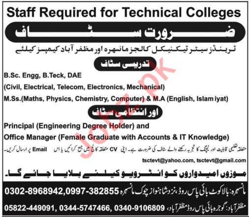 Latest Trends Setter Technical Colleges Teaching Posts Mansehra 2025