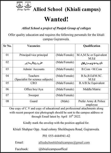 Vacancies in ALLIED SCHOOL Advertisement March 2022