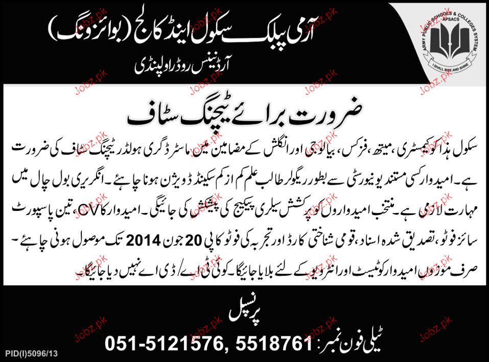 Latest Army Public School APS Teaching Posts Rawalpindi 2025