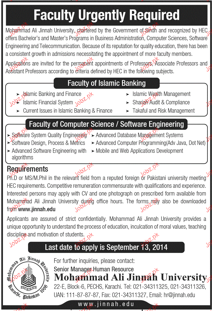 Teaching Faculty Job In Mohammad Ali Jinnah University