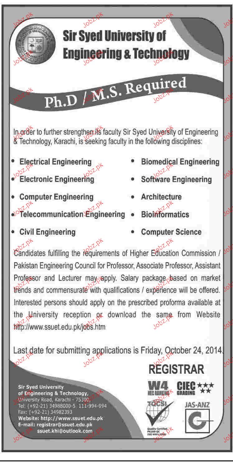 Teaching Faculty Job In Sir Syed University Of Engineering &