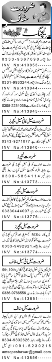 Private Institute invites applications for job positions advertised in daily Aaj dated 5 October 2022 for following vacancies in Peshawar, peshawar Khyber Pakhtunkhwa KPK Pakistan.