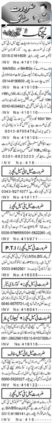 Educational Institute Peshawar, peshawar Khyber Pakhtunkhwa KPK Pakistan invites applications from eligible candidates for the post of math teacher, male teacher, english teacher, computer operator, islamiat teacher, coordinator, science teacher, female teacher, urdu teacher and pti teacher as per advertisement of November 29, 2022 published in daily Aaj Newspaper. M.sc, Master, MA and Bachelor etc. educational qualification will be preferred.