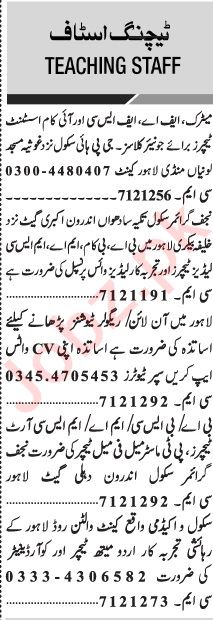 Vacant posts including teaching staff and assistant teacher are announced in Private School Lahore, lahore Punjab Pakistan as per 15 August 2022 advertisement in daily Other Newspaper. Preferred Education is Master, MS and Bachelor etc.