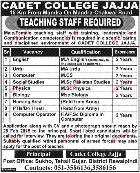 Latest Cadet College Teaching Posts Rawalpindi 2025