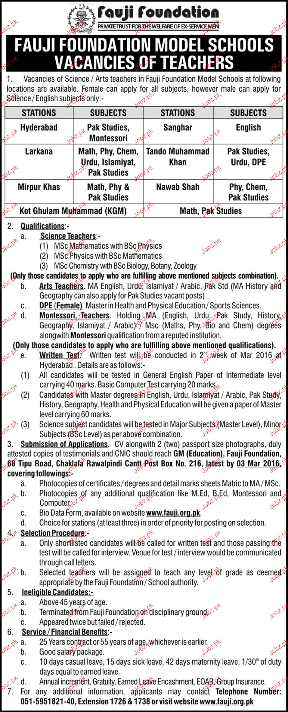 Latest Fauji Foundation Teaching Posts Larkana 2025