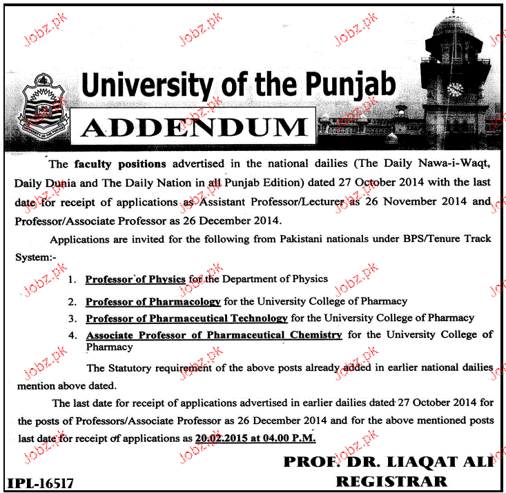 Teaching Job in University of the Punjab