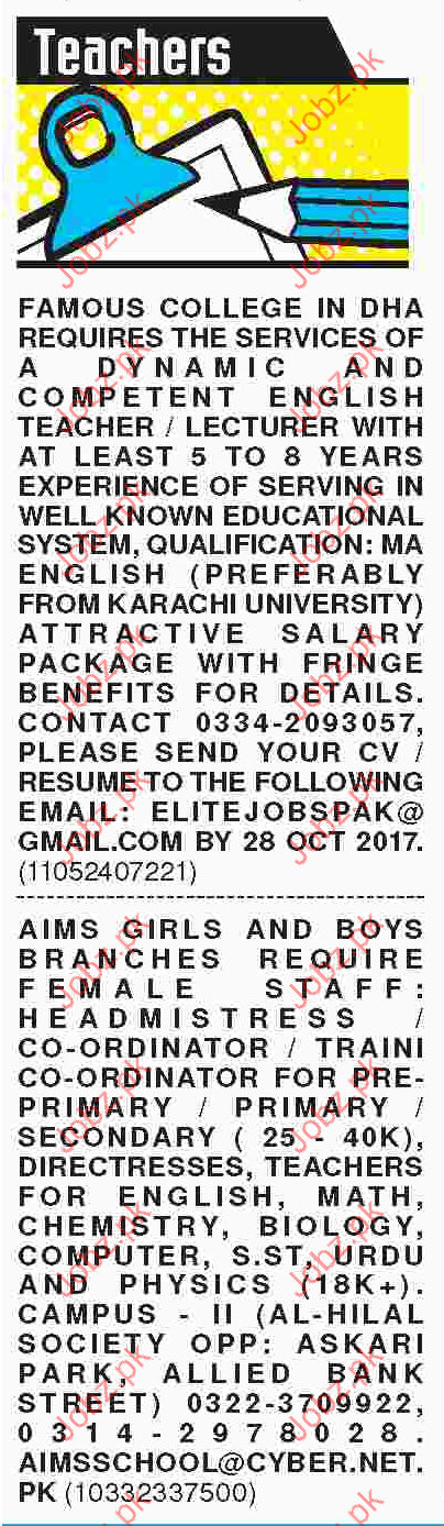 Latest Private College Teaching Posts Karachi 2025