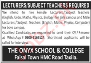 The ONYX School & College invites applications for job positions advertised in daily Jang dated 28 July 2024 for following vacancies in Taxila, taxila Punjab Pakistan.