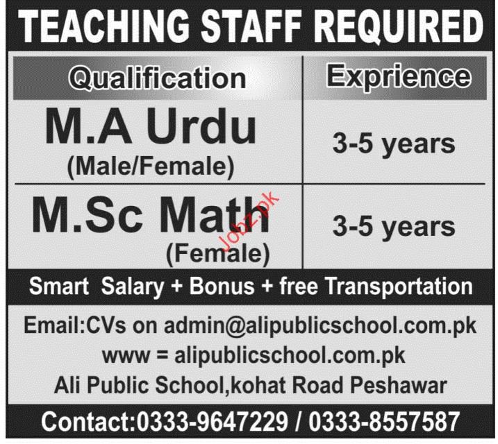 Latest Ali Public School Teaching Posts Peshawar 2025