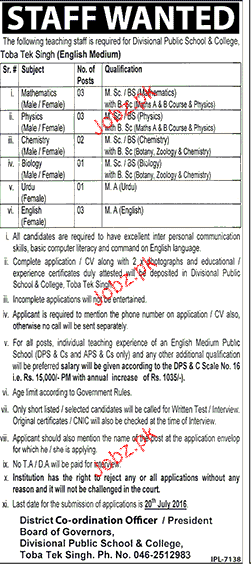Latest Government Teaching Posts Toba Tek Singh 2025