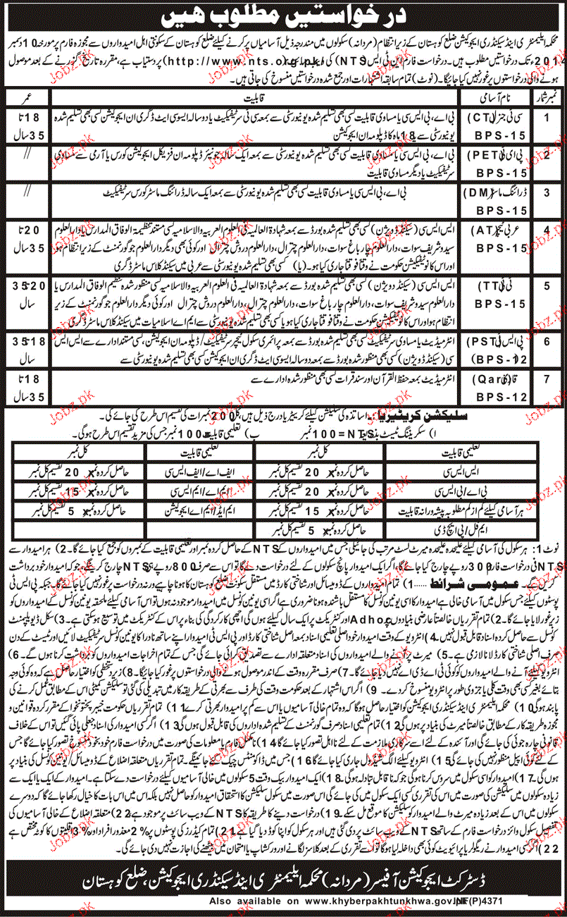 Latest Government Teaching Posts Kohistan 2025