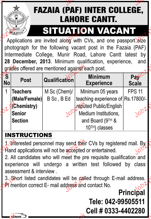 Apply as per details in job advertisement. Login to view further details of how to apply via https://www.jobz.pk online.
