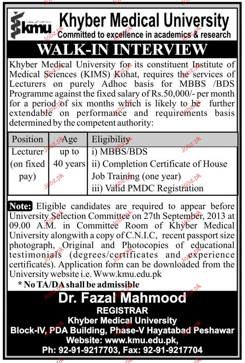 Apply as per details in job advertisement. Login to view further details of how to apply via https://www.jobz.pk online.