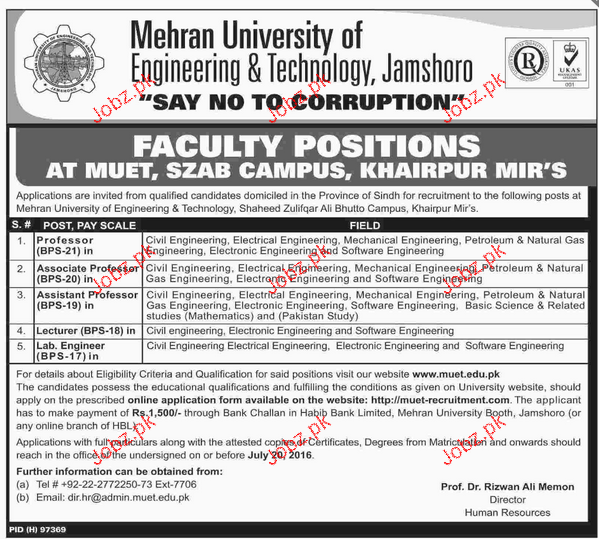 Teaching Jobs In Mehran University Of Engineering & Technolo