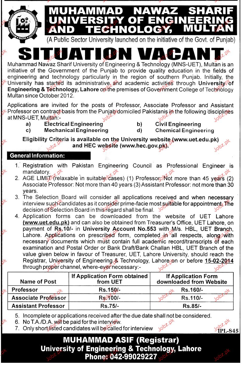Teaching Jobs In Muhammad Nawaz Sharif University Of Enginee