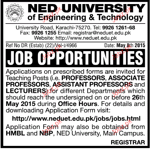 Teaching Jobs In NED University Of Engineering & Technology