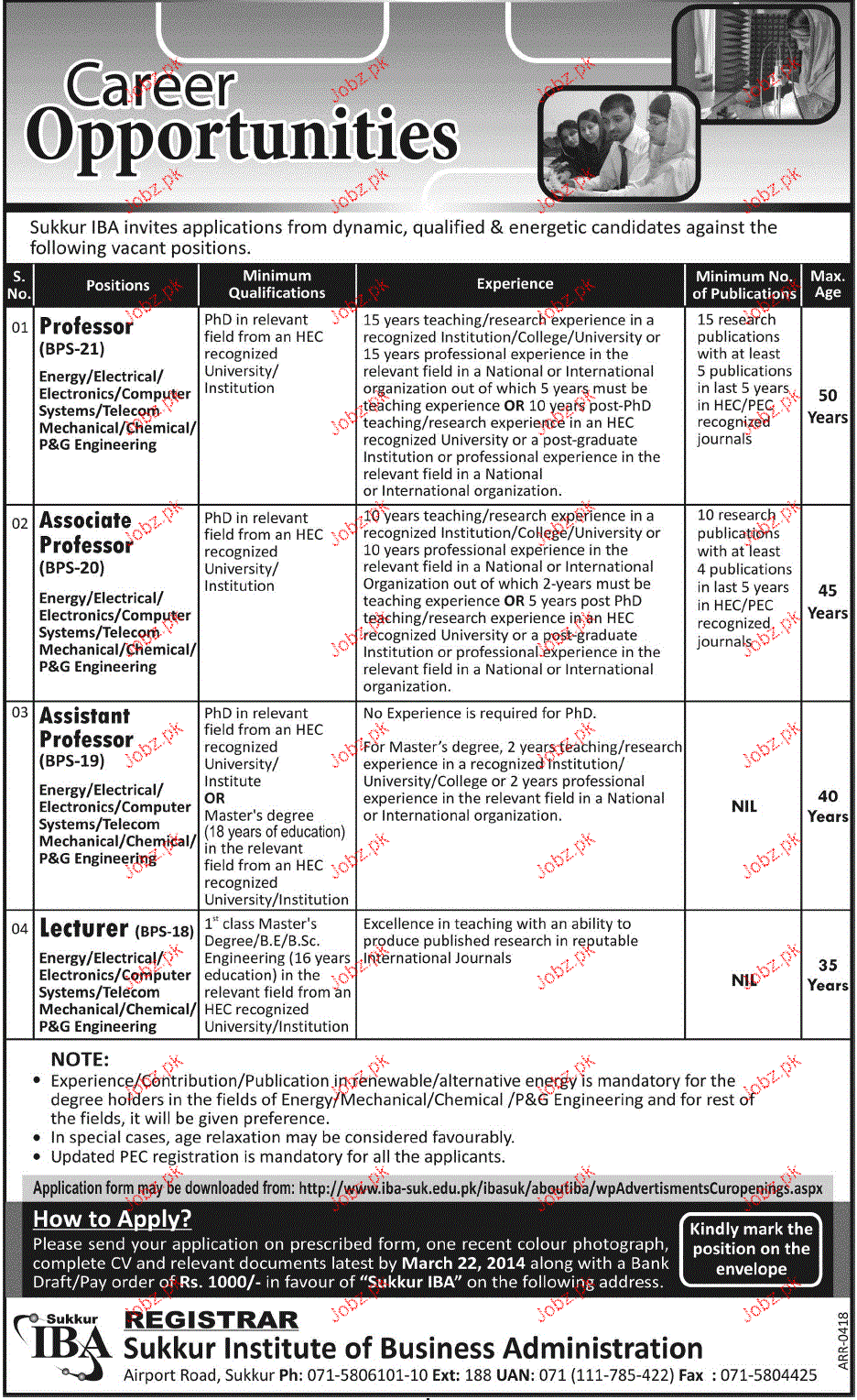 Apply as per details in job advertisement. Login to view further details of how to apply via https://www.jobz.pk online.