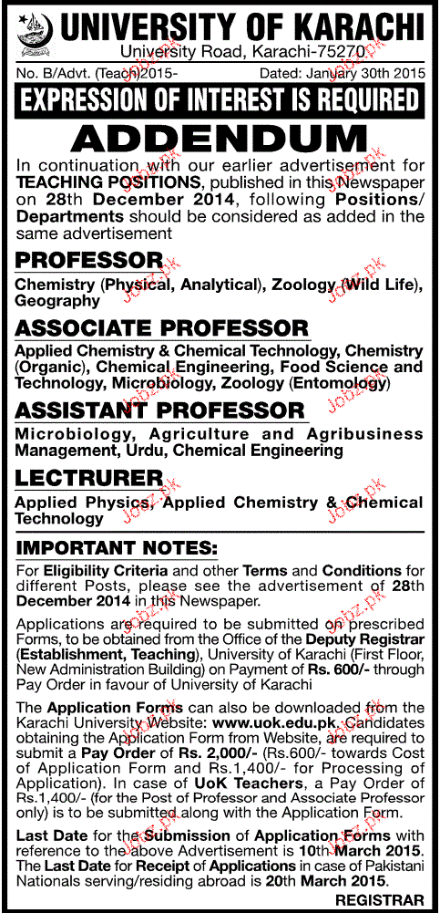 Apply as per details in job advertisement. Login to view further details of how to apply via https://www.jobz.pk online.
