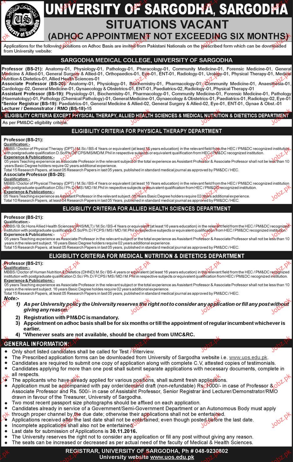 Teaching Jobs In University Of Sargodha