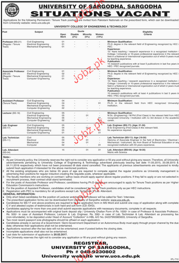Upcoming Job 2026: Teaching Jobs in University of Sargodha