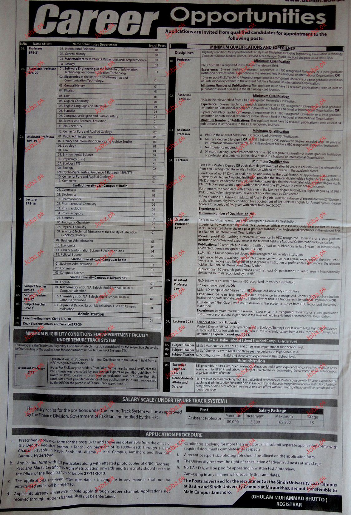 Professors, Associate Professors, Assistant Professors and Lecturers are required in University of Sindh in Jamshoro